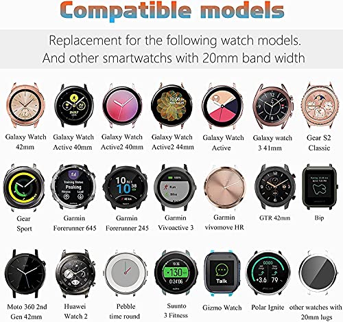 Speciaal ontworpen voor Galaxy Watch Active 40mm SM-R500; Galaxy Watch Active 2 40mm/44mm; Galaxy Watch 3 41mm SM-810/SM-R815/Gear sport 2017 SM-R600; Samsung Gear S2 Classic (SM-R732 & SM-R735); garmin Vivoactive 3/Vivomove HR/Forer/ Forer/ unner 645 ; Moto 360S 2e generatie 42mm/Withings Steel HR 40mm/SUUNTO 3 FITNESS etc; Huawei Watch 2/2 Pro/Huawei Watch 2 Sport; Ticwatch 2/Ticwatch E en andere horloges met 20mm brede horloge lug etc. NIET Compatibiliteit EN NIET FIT Gear S2 R720/R730