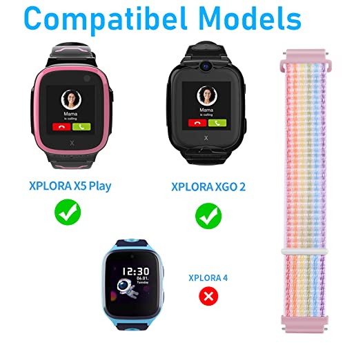 Compatibel model: de nylon lus kinderarmbanden zijn compatibel met Xplora X5 Play / Xgo 2, design voor Xplora kinderhorloge. (Opmerking: smartwatch niet inbegrepen)