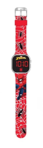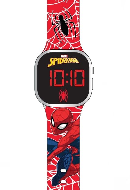 Led-kinderhorloge in stijlvol Spider-Man design (rood) met helder digitaal display en zachte acrylarmband. Het digitale led-display geeft informatie over uren, minuten, seconden, maand en dag
