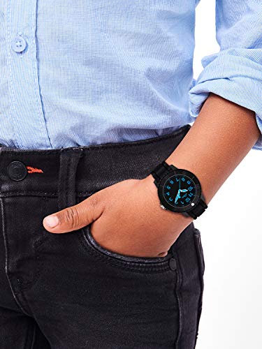 Behuizing in de kleur zwart Ø 30 mm/hoogte behuizing 10 mm; krasbestendig kunststofglas; op de zwarte wijzerplaat zorgen blauwe uren en minuten indexen voor optimale leesbaarheid