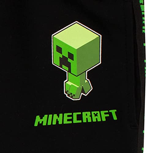 Kids Minecraft Joggers. Calling all gamers! The perfect joggers for lazy days playing the game. These black Minecraft joggers have a print of Creeper by the pocket and taped print down the leg complete with a drawstring waist and pockets. A must have for all Minecraft fans! Dress with our Minecraft sweater for the perfect outfit. Your little gamer will be ready to score plenty of points in Minecraft world!