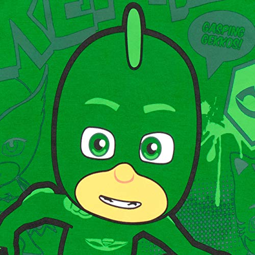 Jongens PJ Masks T-shirt. Jouw held van de nacht kan zelfs gedurende de dag in actie komen in dit geweldige shirt met zijn favoriete gemaskerde helden erop! Een levendige groene top met korte mouwen, waar Gekko de eerste plaats op inneemt, met mede superhelden Catboy en Owlette op de achtergrond. Jouw kronkelend reptiel zal klaar staan voor de volgende missie met dit T-shirt.