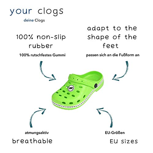 KINDVRIENDELIJK KLEURRIJK – Vrolijke bonte kleuren met patronen zoals bloemen of voetbal – Liefdevol vormgegeven rubberen klompen & pantoletten voor jongens en meisjes – Kinder-klompen voor iedere smaak