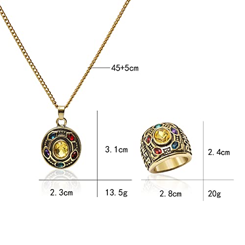 Prachtig ontwerp: Avengers ketting en infinity stones ring is stevig en duurzaam, uniek ontwerp, geschikt voor de meeste gelegenheden, multi-gekleurde kristallen steentjes helpen je de aandacht te trekken.